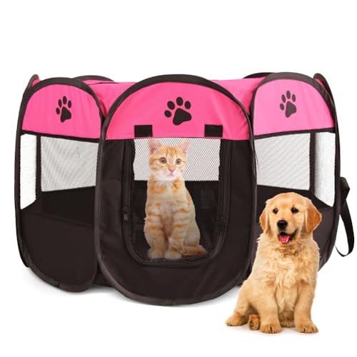 Parc Pliable pour Animaux Domestiques 74x74x43cm - EUBSWA Tente étanche Parc pour Chiots, Chats, Chiens, Lapins - l'intérieur ou l'extérieur (Rose)
