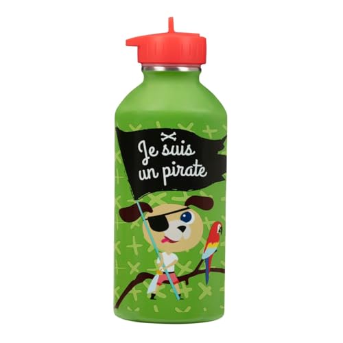 Gourde enfant Acier inoxydable DRAEGER PARIS - Facile à nettoyer - gourde réutilisable - Idéale pour parc, école - Contenance 300ml - 17 cm x 6,5 cm - Vert - Message inscrit : Je Suis Un Pirate