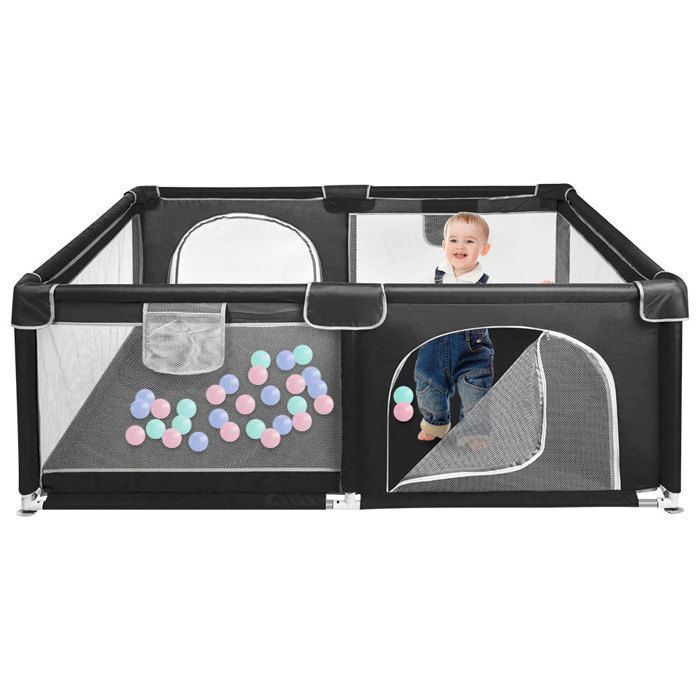 Parc Bébé 160x120 cm -MIPAN-DActivité pour Enfants avec Base -Pliable -Parc XL pour enfant en bas âge Avec Porte Zippée - Noir