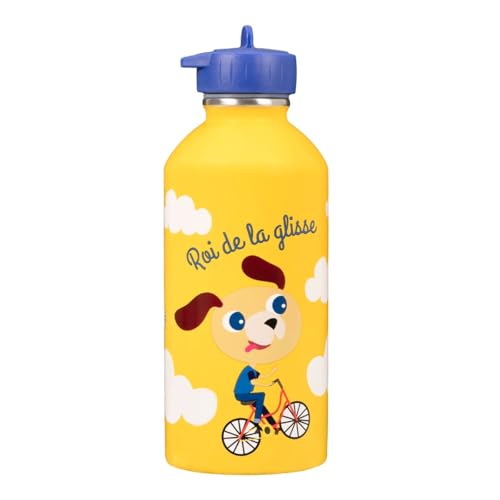 Gourde enfant Acier inoxydable DRAEGER PARIS - Facile à nettoyer - gourde réutilisable - Idéale pour parc, école - Contenance 300ml - 17 cm x 6,5 cm - Jaune - Message inscrit : Roi De La Glisse