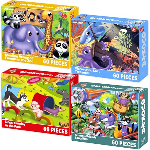 QUOKKA Puzzle Enfant 4 5 6 Ans - 4x60 Pièces Puzzle Animaux Enfant 3 4 Ans - Jouets Vertical Coloré avec Animaux l'Océan Zoo Parc - Jeux Éducatif Cadeau pour Garçons et Filles 6 7 8
