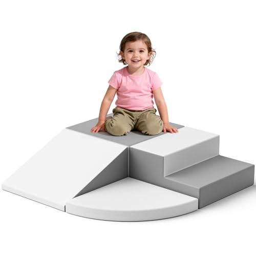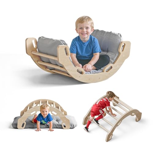 Triangle dEscalade COSTWAY 7 Modes de Jeu dEveil Montessori Parcours Motricité pour Bébé 1 Ans+ Gris