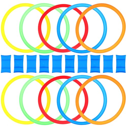 Hohopeti Jeu de Lancer Anneaux Colorés Épais pour Garçon Fille et Adultes Adresse Extérieur Intérieur Anneaux Parcours Motricité Set Cerceaux Éducatifs pour Fête et Jardin