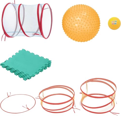 Ludi - Parcours de motricité - Tunnel de Jeu + 3 arceaux de différentes hauteurs + Grand Ballon à Picots + Petit Ballon Souple + Tapis de Sol 6 Dalles - Babygym - Dès 2 Ans