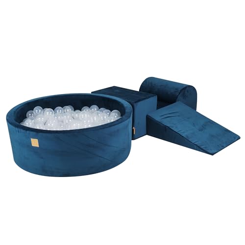 MEOWBABY Piscine à Balle avec Parcours de Motricité pour Bébé avec 200 Balles - Parcours Motricité Enfant et Bébé en Velours - Aire de Jeu Modulable pour Enfants, Bleu Marine
