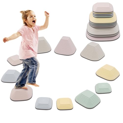 12 Pierres D'équilibre pour Enfants,Antidérapant Parcours de Motricité Intérieur & Extérieur,Balance Stepping Stones,Favorise l'Équilibre,la Coordination et la Force pour les Enfants Âgés 3-8