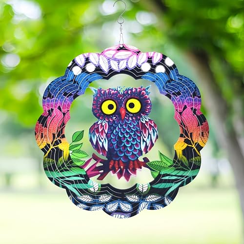 Moulin à Vent Artistique pour décoration de Jardin en Acier Inoxydable 3D Sculptures hiboux cinétiques à Suspendre décorations pour Jardin, extérieur, intérieur ou extérieur, Patio et pelouse,