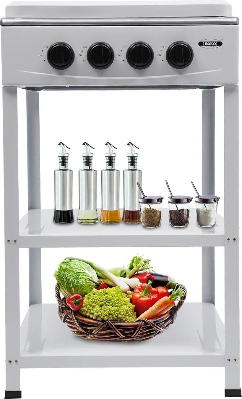 Cuisinière à gaz - 4 brûleurs - Pare-vent - Portable - Compatible GNL/GPL - 75 000 BTU par brûleur - 2 tablettes - Intérieur/extérieur