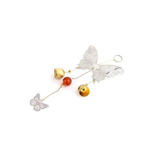 lachineuse - Carillon à Vent Papillon - Carillon Extérieur en Bois & Métal - Carillon Métallique avec Clochettes - Coloris Blanc & Doré - Idéal pour Extérieur, Intérieur, Jardin - Ambiance Asie Chine