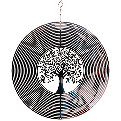 SPRING SONG Moulin à Vent 3D en Acier Inoxydable pour intérieur ou extérieur - 25,4 cm - Arbre de Vie - Décoration cinétique - Décoration Artistique à Suspendre - Cadeaux décoratifs