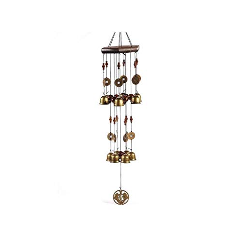 lachineuse - Carillon à Vent avec Clochettes - Carillon en Métal - Richesse & Fortune - Carillon Métallique Chinois - Coloris Doré - Idéal pour Extérieur, Intérieur, Jardin - Ambiance Asiatique