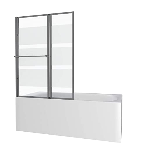 AURLANE Pare Baignoire relevable 139x105cm avec volet - Verre Transparent avec Bande depolie