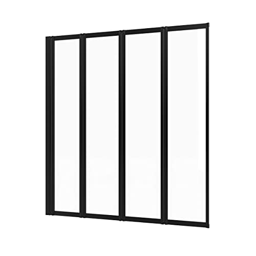 AURLANE Pare Baignoire 4 Volets pivotants - Profiles Noir Mat - Verre Transparent 4mm - Tetra Black