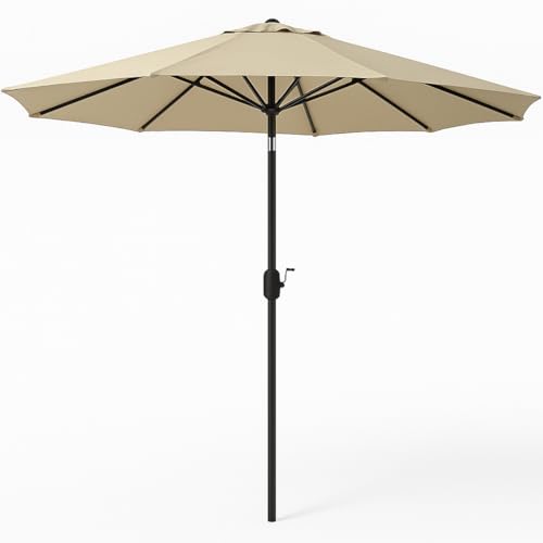 BAKAJI Parasol de jardin pare-soleil 2,7 m pour balcon, système d'air vent, inclinaison réglable et ouverture de la manivelle, revêtement anti-UV imperméable pour mer, terrasse, plage, beige, 270