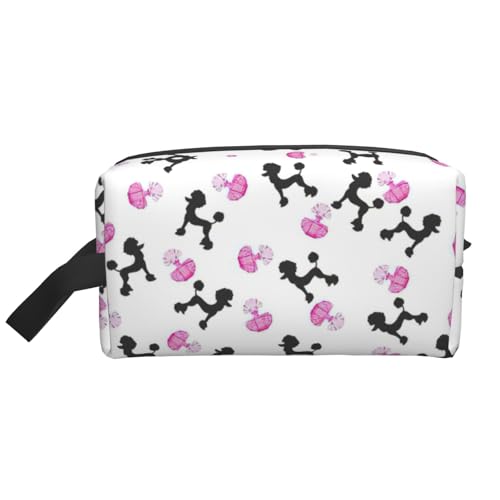 YANYU Trousse de toilette de voyage avec fermeture éclair et poignées - Motif bouteille de parfum rose girly et caniche, blanc, One Size