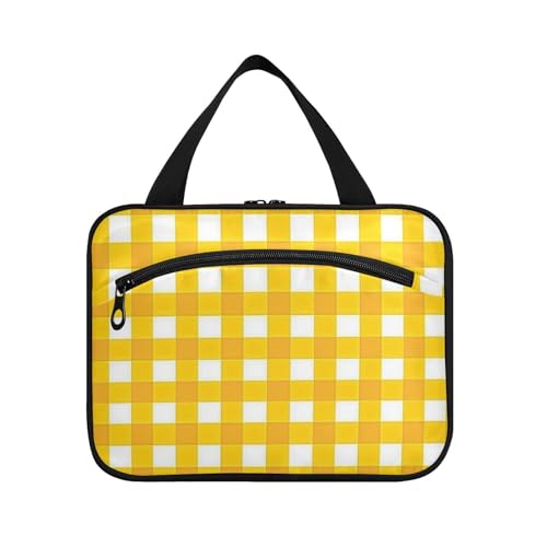 Trousse à cosmétiques de voyage à suspendre avec crochet, motif à carreaux jaunes et blancs, avec fermeture éclair pour femme, voyage envase para parfum de L