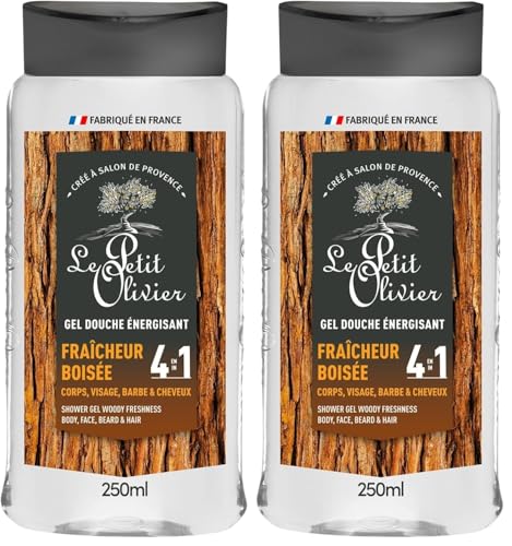 LE PETIT OLIVIER - Gel Douche Homme 4 en 1 - Fraîcheur Boisée - Corps Visage, Barbe & Cheveux - Parfum Frais & Énergisant - Nettoie en Douceur - PH Neutre Pour la Peau - Fabriqué en France - 250ml