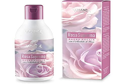 L'AMANDE - Bain moussant pour femme frais au parfum de jasmin et Mimosa, gel nettoyant et hydratant corps délicat et naturel, bain mousse action adoucissante - rose suprême, 250 ml