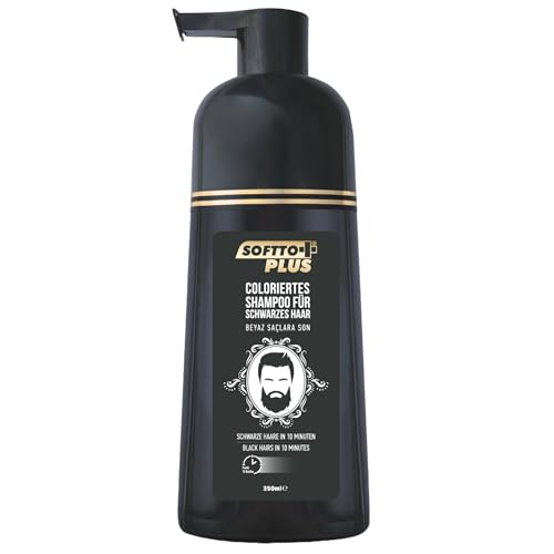 Softto+ Plus Black Hair Shampooing couvrant les cheveux blancs et gris en 10 minutes, pas de taches, gants inclus, pour homme et femme, contenance 350 ml/noir