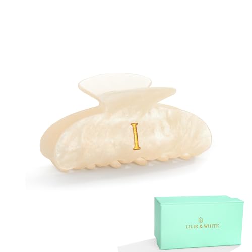 LILIE&WHITE Pince Cheveux Femme Dorée Initiale I, Design Nacré Élégant Fait Main, Accessoire Chic Antidérapant, Cadeau Féminin Pour Toutes Les Occasions
