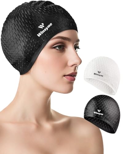 COPOZZ Bonnet de Bain en Silicone pour Femme, protège Les Cheveux et Les Oreilles, Convient aux Femmes avec des Cheveux Longs pour Garder Les Cheveux au Sec