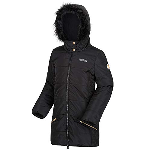 Regatta Parka Lifestyle Junior BLUEBELLE déperlante et Isolante Thermo-Guard avec Capuche bordée de Fausse Fourrure Veste Enfant Black FR : XXS (Taille Fabricant : 104)