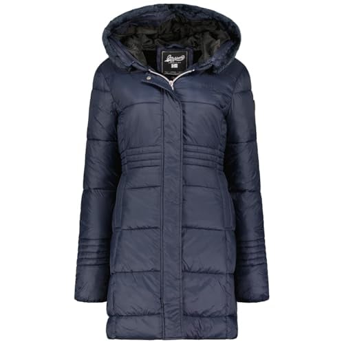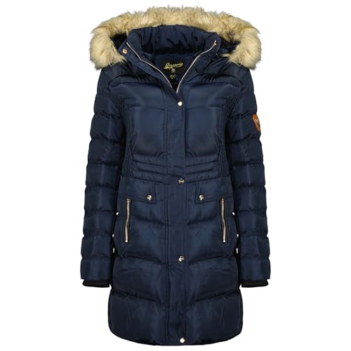 Geographical Norway Dorifore Lady Parka Longue Epaisse Chaude Femme Automne Hiver - Manteau Fin Capuche Fausse Fourure - Blouson Coupe Vent - Doudoune Elegante Femmes (Marine L)