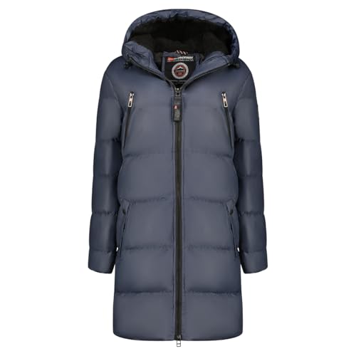 Geographical Norway Deneza Lady Parka Longue Epaisse Chaude Femme Automne Hiver - Manteau Fin Capuche Fausse Fourure - Blouson Coupe Vent - Doudoune Elegante Femmes (Marine L)