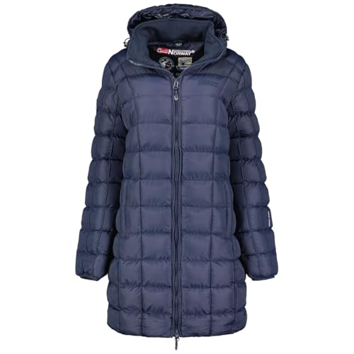 Geographical Norway Badonna Lady Parka Longue Epaisse Chaude Femme Automne Hiver - Manteau Fin Capuche Fausse Fourure - Blouson Coupe Vent - Doudoune Elegante Femmes (Marine M)
