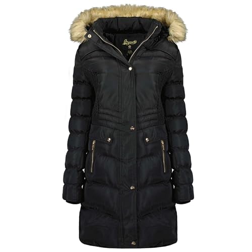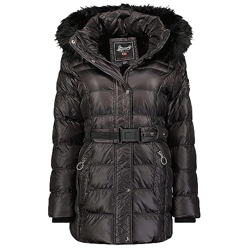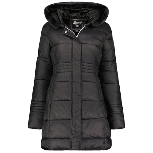 Geographical Norway Dorifore Lady Parka Longue Epaisse Chaude Femme Automne Hiver - Manteau Fin Capuche Fausse Fourure - Blouson Coupe Vent - Doudoune Elegante Femmes (Noir L)