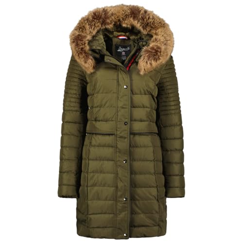 Geographical Norway Charlize Lady Parka Longue Epaisse Chaude Femme Automne Hiver - Manteau Fin Capuche Fausse Fourure - Blouson Coupe Vent - Doudoune Elegante Femmes (Kaki XL)