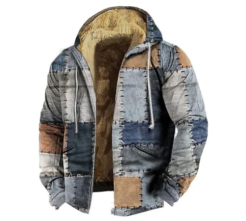 Sweat À Capuche Pour Homme – Parka Chaude En Polaire D'Hiver Pour Couture, Patchwork, Veste Graphique, Vêtements D'Extérieur, Pardessus Zippé À Capuche Quotidien Pour Les Vacances, Comme Indiq