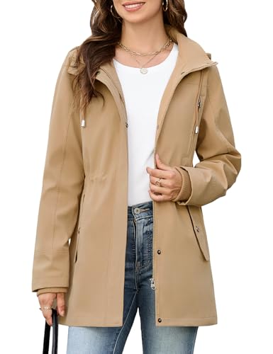 CMTOP Veste Femme mi Saison Léger Décontracté Blouson Fermeture éClair Veste Chic et Élégante, Hydrofuge Jacket à Manches Longues Parka avec Multi Poches Pour Printemps Automne Été(Kaki,S)