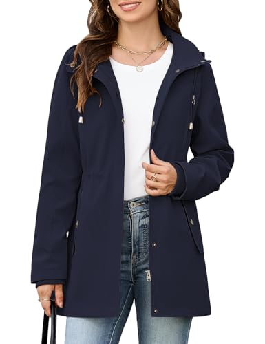 CMTOP Veste Femme mi Saison Léger Décontracté Blouson Fermeture éClair Veste Chic et Élégante, Hydrofuge Jacket à Manches Longues Parka avec Multi Poches Pour Printemps Automne Été(Bleu Marine,L)