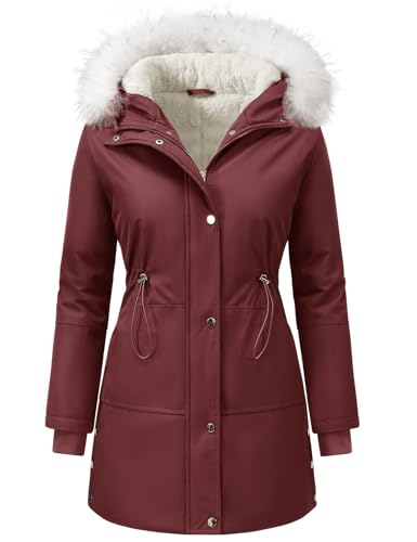 Vijamiy Manteau Femme Hiver Veste Polaire Femmes Manteaux Hiver Chic Blouson Parka Chaud Imperméable Outercoat avec Zippée Poches(Rouge vin,S)