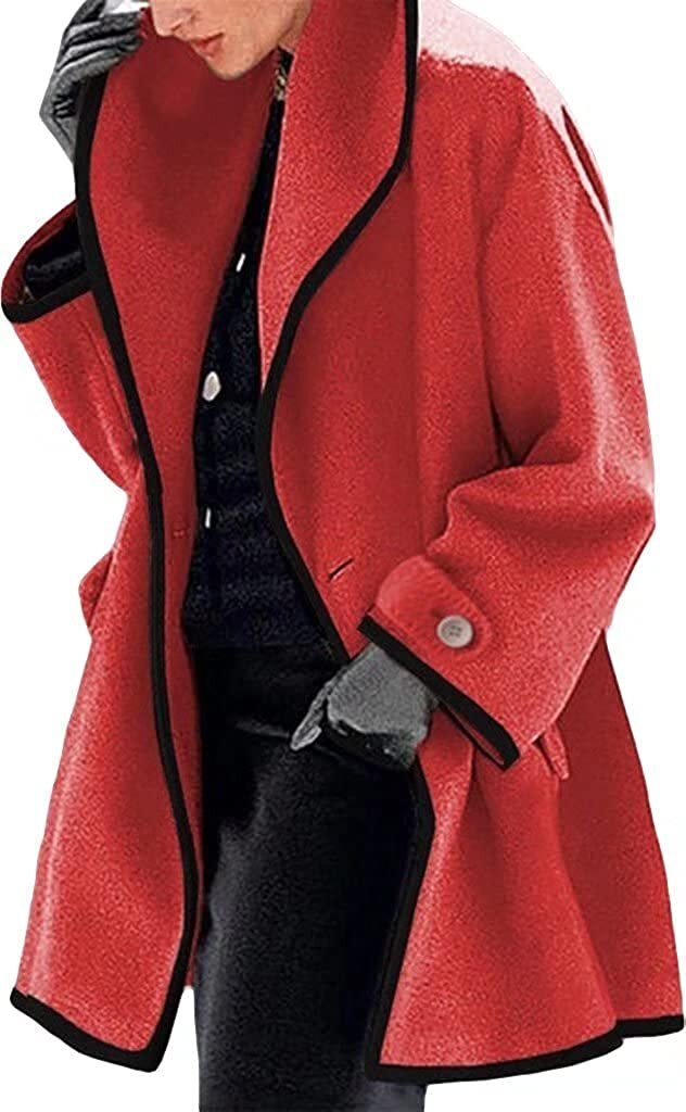 ASKSA Femme Manteau d'hiver uni avec capuche Chaud Parka d'hiver mi-long Dufflecoat, B Rouge, 3XL