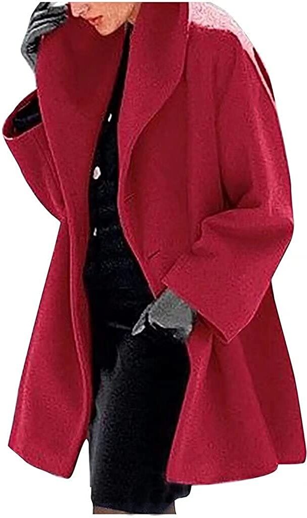 ASKSA Femme Manteau d'hiver uni avec capuche Chaud Parka d'hiver mi-long Dufflecoat, B Rouge, 2XL