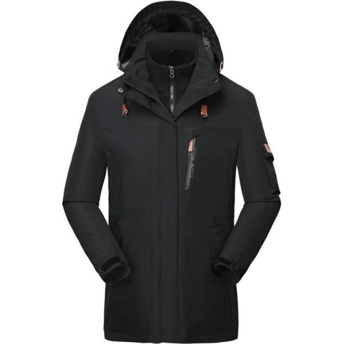 Softshell Parka de Ski Sport Homme 3 en 1 Chaud Imperméable Randonnée Hiver - Noir