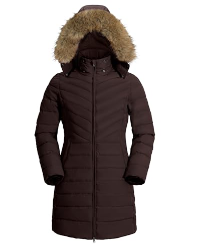 Pioneer Camp Manteau Femme Hiver Chaud avec Capuche Coupe-vent Imperméable Doudoune Longue Veste MatelasséE 2 Zippée Rembourré Manteaux Fermetures Éclair Latérales Parka (Marron;S