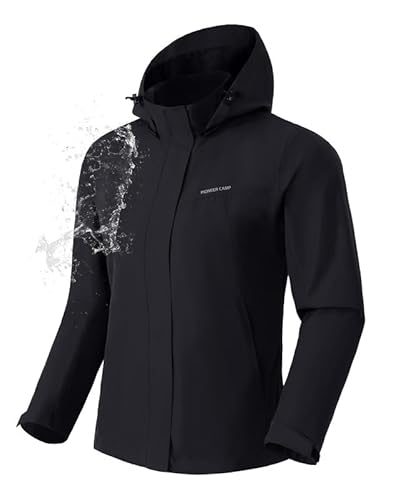Pioneer Camp Coupe Vent Femme Impermeable Respirant Veste de Pluie Avec Capuche Amovible Léger Parka Manteau Randonnée Vêtements pour Extérieur(Black;XL