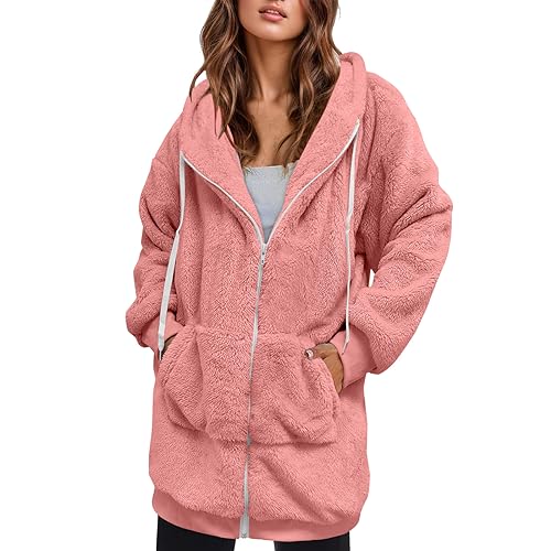Veste polaire pour femme - Veste en peluche - Parka d'hiver en peluche - Veste d'extérieur moelleuse - Veste à capuche Sherpa - Grande taille