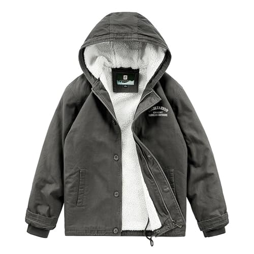 Gris,M,Vestes d'hiver à Capuche pour Hommes, Manteaux décontractés, Veste Bomber Ample pour Homme, Veste extérieure en Polaire épaisse Chaude, Parkas, Manteau de Travail