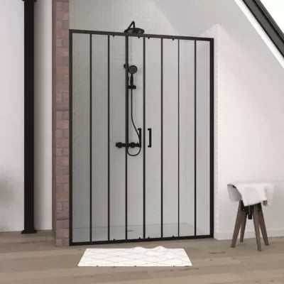 Vente Unique Porte de douche coulissante noir mat style atelier 140 x 195 cm URBANIK
