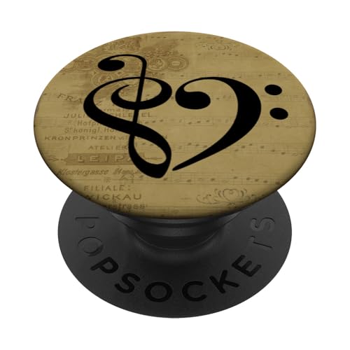 Partition Vintage en Forme de clé de Sol et de Basse en Forme de cœur PopSockets PopGrip Adhésif