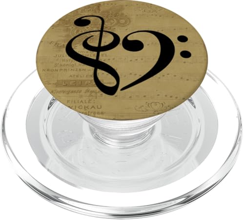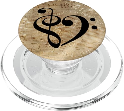 Partition Vintage en Forme de clé de Sol et de Basse en Forme de cœur PopSockets PopGrip pour MagSafe