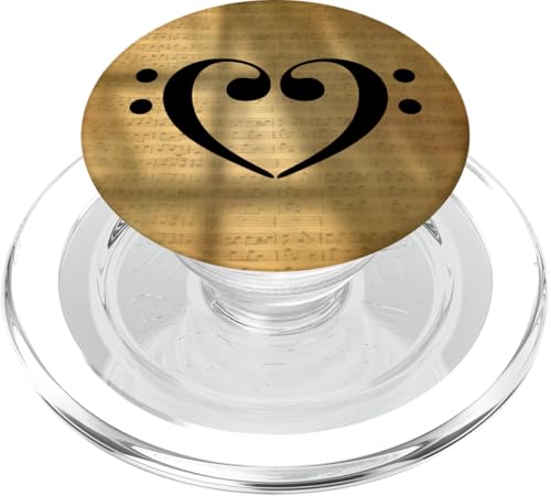 Clé de contrebasse en Forme de cœur rouillé, partition dorée Vintage PopSockets PopGrip pour MagSafe