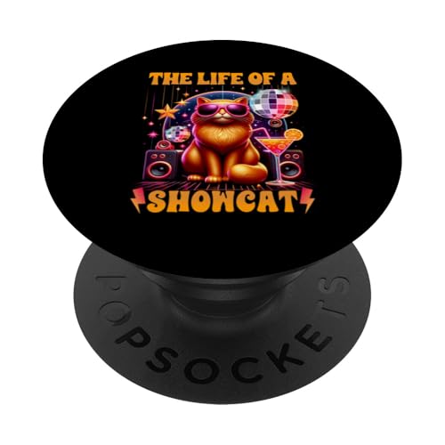 The Life of A Showcat Party Girl Cat Lunettes de Soleil Boule Disco PopSockets PopGrip Adhésif