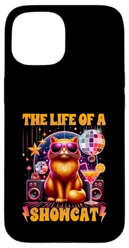 The Life of A Showcat Party Girl Cat Lunettes de Soleil Boule Disco Coque pour iPhone 15