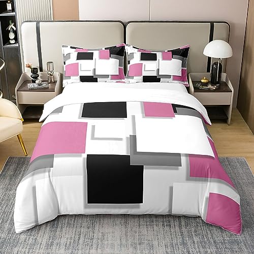 Housse de Couette Géométrique Coton pour Enfants Garçons Filles, Ensemble de Literie Moderne, Housse Couette Rose Blanche Noire Grise, Parure de Lit 240x260 Art Abstrait, 2 Taies d'oreiller