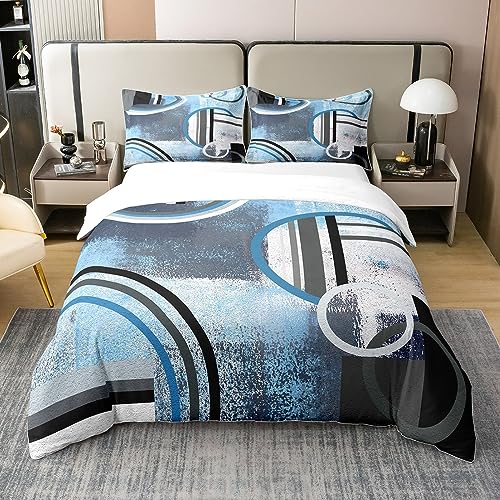 Homewish Parure de Lit 240x260 Coton Géométrique Ombrée, Housse de Couette Bleu Noir Blanc Gris pour Enfants, Ensemble de Literie Aquarelle Pastel, Housse Couette Contemporaine Rayée, Ultra Doux